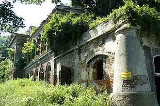 Het paleis is omgeven door een park met een oppervlakte van 6 hectare, beplant met loofbomen en waar tevens de ruïnes te vinden zijn van een oude graanschuur, de grafkapel van de familie von Eikstedt en de oranjerie.