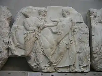Het zijn deze processie en het aansluitende offerfeest ter ere van Athena die afgebeeld staan op de beroemde Parthenonfriezen. Vanaf de vijfde eeuw v.C. mochten ook Atheense kolonisten die niet in Athene leefden maar wel aan de stad onderhorig waren deelnemen aan de processie en het offerfeest en kregen de Panathenaia meer en meer het karakter van een imperiaal feest.