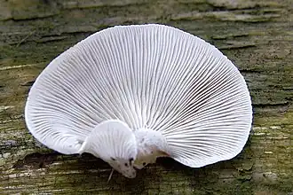 De lamellen zijn wit, worden met de jaren bleek oker. Ze staan dicht op elkaar en aflopend op de steel. De lamellenrand kan als een geleiachtige draad worden afgetrokken.