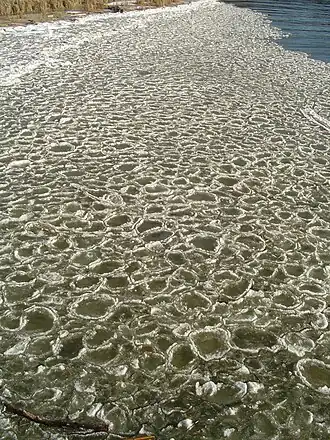 - ↑ (en) Environment and Climate Change Canada, Ice Glossary: Pancake Ice. www.ec.gc.ca. Government of Canada (15 januari 2016). Gearchiveerd op 5 oktober 2017. Geraadpleegd op 29 juli 2018.