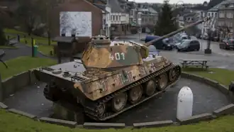 Panzerkampfwagen V Panther, bestaande uit een Ausf. D romp en een G koepel, in het Pantsermuseum Thun.