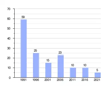 | Bron: Statistics Canada (1991–1996[4], 2001–2006[5], 2011–2016[6], 2021[7]) |