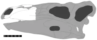 Het fossiel bestaat uit de maxilla met tanden, een bovenliggend deel van de praemaxilla en een deel van de neusbeenderen. Het geheel wijst op een vrij platte maar forse kop met een licht bol profiel. De neusgaten zijn groot. Het stuk praemaxilla is lang en breed. De tandrij staat ver van de kaakrand, een mogelijk teken dat er wangen aanwezig waren. De tanden hebben een opvallende hoofdrichel op het buitenoppervlak en tonen ten dele duidelijke slijtage; de onregelmatigheid daarvan toont aan dat er ook geen regelmatige occlusie was. De totale lengte van het dier is geschat op zo'n vijf meter. Een mogelijke autapomorfie, unieke afgeleide eigenschap, is de aanwezigheid van een secundair verhemelte, gevormd door de interne vleugels van de bovenkaaksbeenderen.