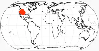 | Verspreiding van Paratomarctus, gebaseerd op fossiele vondsten | |||||||||||||