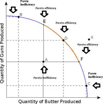 Een economie is Pareto-efficiënt wanneer iedere verandering in de economie, die tot een welvaartsverbetering voor de één leidt, tegelijkertijd een welvaartsverlies voor iemand anders betekent, met andere woorden: wanneer iemand zijn/haar positie alleen ten koste van een ander kan verbeteren.