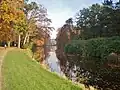 In de negentiende eeuw werd de formele omgrachting vergraven en ontstond één slingerende waterpartij die de suggestie van een lange slingerende rivier moest oproepen. De afgegraven grond werd gebruikt om heuvels op te werpen. Zo ontstond een afwisseling van relief en water met open en gesloten delen van het park. De aanleg werd vermoedelijk gedaan door J.D. Zocher jr.. De beek eindigde in een vijver met een eilandje. In de zuidelijke heuvel aan de vijver bevindt zich de ijskelder van kasteel Groeneveld. Ter hoogte van de brug over de beek is een zichtpunt naar het noorden. De beek eindigt in het noorden in een grote driehoekige vijver met eilandje bij de opgeworpen heuvel de Wijnberg. Deze heuvel dankt zijn naam aan de druiventeelt die hier tevergeefs werd uitgeprobeerd. De Wijnberg bood uitzicht over de achterliggende weilanden en de in chaletstijl gebouwde melkboerderij 'Wildenburg' die in 1934 werd afgebroken. In het park bevinden zich tientallen tulpenbomen waarvan de oudste uit 1830 dateert.[3]