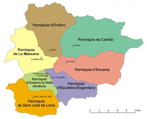 Tot 1978 waren er zes parochies; Escaldes-Engordany werd in dat jaar afgescheiden van de parochie Andorra la Vella.