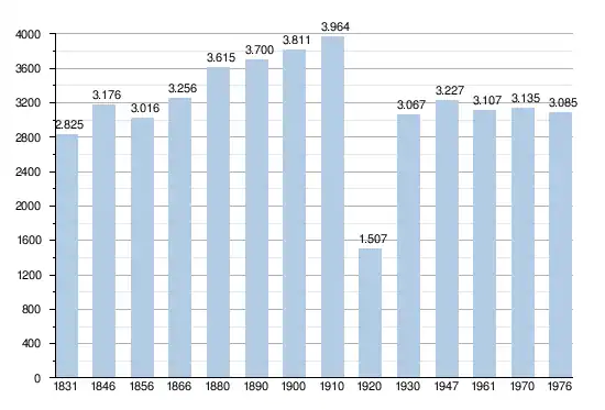 - Bronnen:NIS, Opm:1831 tot en met 1970=volkstellingen; 1976 = inwoneraantal op 31 december