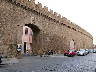 Wapenschild van Pius IV van de familie Medici boven een van de doorgangen die hij in de Leontijnse Muur heeft laten maken.