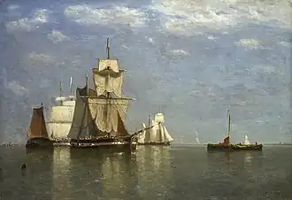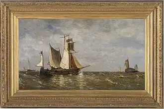 - Amsterdam, 1877 : Een Hollands zeegezicht bij stil weer, “Geen zuchtje” (verz. W.C.M. de Jonge van Ellemeet), “Troebel water” (zelfde verz.), “Loodsboot bij storm” (verz. P. Verloren van Themaat)