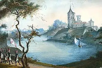 | Ingang naar het park met het paviljoen "Drie Gratiën" | |||