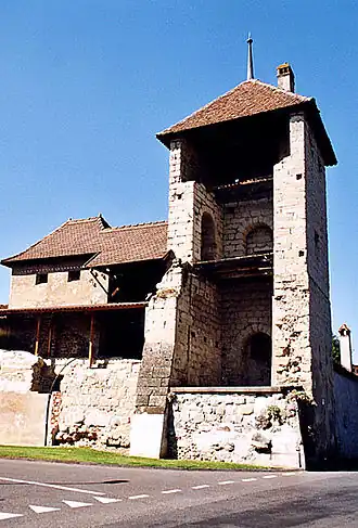 Het deels historische centrum wordt gedomineerd door de voormalige abdijkerk Notre Dame uit de 11e eeuw. Ernaast staat de 'reformierte Pfarrkirche' uit de 14 eeuw. Ook herbergt het stadje nog enkele bezienswaardige patriciërshuizen en een deel van de stadsmuur met torens o.a. Tour Barraud.