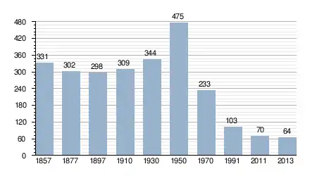 - Bron: INE, 1857-2011: volkstellingen