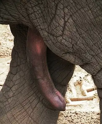 Bij paarden en honden is te zien dat de penis teruggetrokken zit in een omhulsel. Bij de erectie schuift het grootste deel van de penis naar buiten.