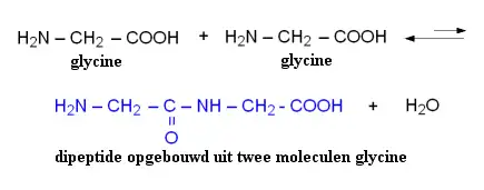 De vorming van een dipeptide uit twee afzonderlijke aminozuren gaat gepaard met het verlies van een watermolecuul (condensatiereactie). Deze ontstaat door het afstaan van een waterstofatoom (H) door de aminogroep en een hydroxylgroep (OH) door de carboxylgroep.