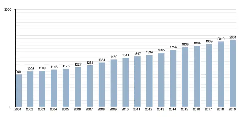 In 2019 bedroeg de bevolkingsdichtheid 1.546 inwoners per km².[2]