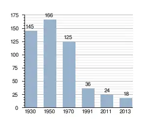 - Bron: INE, 1930-2011: volkstellingen