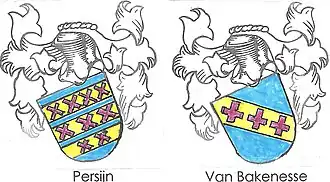 Symon Persijn (geboren ca. 1247, de broer van ridder Jan Persijn, zie hieronder) werd in de 2e helft van de 13e eeuw beleend met het gebied Bakenes en zal zich dan Van Bakenese gaan noemen. Hij en zijn nakomelingen voeren een wapen met een schuinbalk, met daarop de drie andreaskruisen van Persijn.[4]