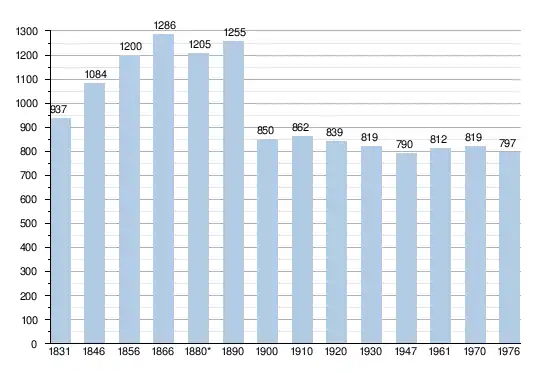 - Bronnen:NIS, Opm:1831 tot en met 1970=volkstellingen, 1976= inwoneraantal op 31 december