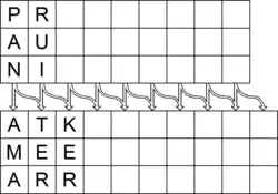 De verticale term PAN uit de eerste kolom vormt zowel de woorden PANAMA als PANTER. Op dezelfde manier vormen ook de opvolgende elementen twee woorden (RUITER en RUIKER, enz.). De plaatsen waar woorden aan elkaar worden ‘gehaakt’, zijn meestal aangegeven met pijlen. De puzzels zijn moeilijker op te lossen als de omschrijvingen niet op volgorde staan, maar door elkaar.
