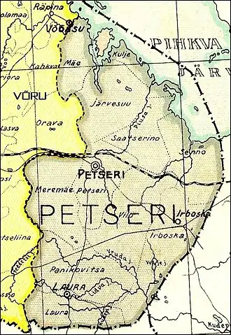 Op 29 maart 1919, tijdens de Estische Onafhankelijkheidsoorlog, werd de stad Petseri door Estische troepen veroverd. In 1920 sloten Estland en de Sovjet-Unie het Verdrag van Tartu. Een gevolg van het verdrag was dat Petseri en het omringende gebied bij Estland werden ingelijfd. Daaruit kwam de provincie Petserimaa voort.[2]