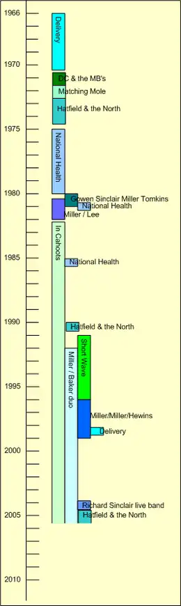 Halverwege 1972 ging Miller weer aan het werk met zijn broer Steve, Richard Sinclair (ex-Caravan) en met Pip Pyle. Ze begonnen onder de naam Delivery, en na een aantal wijzigingen werd dit Hatfield and the North, met Dave Stewart op keyboards. De twee albums van de Hatfields bevatten composities van alle bandleden. De composities van Miller kenmerkten zich door een openheid, een vrijheid nog verbonden aan de meer improviserende muziek van Matching Mole. Eind 1973 deed Hatfield and the North een aantal optredens samen met Gilgamesh. Na het opbreken van Hatfield werd op dat idee voortgeborduurd en werd in 1975 National Health gevormd. Initiatiefnemers waren Dave Stewart en Alan Gowen. De muziek van National Health was complex, sterk beïnvloed door de jazz. Miller zou de volledige vijf jaar van het bestaan bij National Health blijven spelen.