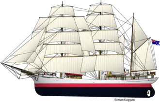 De bark Picton Castle in 2009 voor anker bij Carriacou