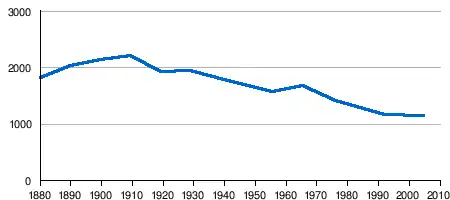 Onderstaande figuur toont het verloop van het inwoneraantal vanaf 1880.[1]