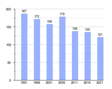 | Bron: Statistics Canada (1991–1996[5], 2001–2006[6], 2011–2016[7], 2021[4]) |