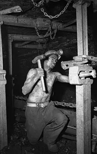 In de halfmechanische pijlers die bij de mijnen in Nederlands Limburg vanaf 1950 in gebruik kwamen verloopt de koolwinning langs mechanische weg. De ondersteuningen worden hier handmatig weggenomen en geplaatst. Voor het losmaken van de kool kunnen schraapbakken, dan wel een kolenploeg of kolenschaaf[1] worden gebruikt. Deze worden door middel van sterke lieren, die opgesteld staan in de galerijen, langs het kolenfront heen en weer getrokken. Schraapbakken, die ook in pijlers met steilere helling kunnen werken, zorgen tevens voor de afvoer van de kolen. Bij toepassing van een schaaf of ploeg maakt men gebruik van een kettingtransporteur, de losgemaakte kool valt hierbij rechtstreeks in de transporteur en wordt door deze afgevoerd. Het verplaatsen van de transporteur samen met ploeg of schaaf in de richting van het koolfront, gebeurt door middel van pneumatische omdrukcilinders.