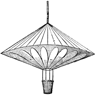De volgende sprong voorwaarts in de ontwikkeling van het valscherm maakte André Jacques Garnerin, de uitvinder van de zijden parachute zonder raamwerk.[6] Hij bevestigde zijn opgevouwen constructie aan een ballon en als hij op de (juiste) hoogte was kapte hij de kabel waarna hij zittend in zijn mandje de daling inzette. Dit lukte aardig maar het vervaarlijk slingerend vervoer was niet te controleren. Zo zweefde hij in 1802 als eerste boven Britse bodem en hoewel hij ook deze val overleefde stelde Sir George Cayle dat een soort puntzak voor veilige landingen waarschijnlijk beter geschikt zou zijn. Het Angelsaksisch avontuur van Garnerin werd vereeuwigd in het volgende versje: