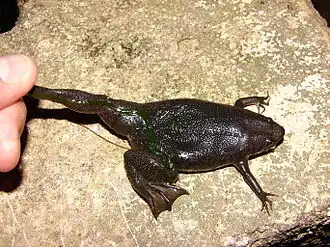 Ondanks de relatief grote aantallen die uit het wild worden gehaald voor onderzoek en het houden in gevangenschap komt de soort nog algemeen voor. De kikker wordt relatief vaak gevangen door vissers die met een hengel vissen.[2] Door de IUCN wordt de soort beschouwd als veilig; LC of Least Concern.[9]