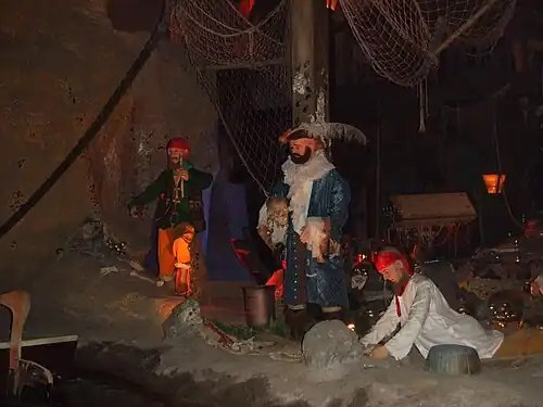 Men voer tijdens de rit door verschillende scènes die betrekking hadden op het piratenthema. In het begin van de rit maakte men een afdaling van drie meter. Aan het einde van de rit voer men langs een restaurant. Bezoekers van dit restaurant hadden dus uitzicht op de laatste scène van de darkride.[10]
