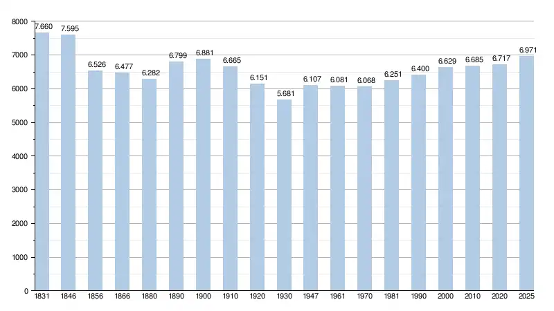 Alle historische gegevens hebben betrekking op de huidige gemeente, inclusief deelgemeenten, zoals ontstaan na de fusie van 1 januari 1977.
