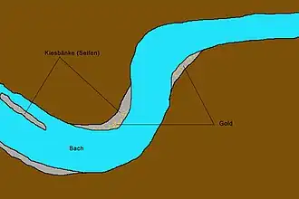 Rijngoud, bekend van Richard Wagners Das Rheingold, is een placerafzetting van goud in de Rijn dat in Rheinzabern gewonnen wordt als nevenproduct van kiezel. In Suriname komen goudplacers voor in het oostelijke bergland van de groensteengordel, het goud is verweerd uit het primaire gesteente en geconcentreerd in hellingafzettingen en kreekafzettingen.[1]