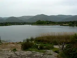 Het Lac des Escarcets is een stuwmeertje van ongeveer 14 ha midden in de vlakte, aangelegd in 1969 als waterreservoir voor het bestrijden van bosbranden. Het wordt gevoed door twee kleine riviertjes die hun bron hebben in het Massif des Maures, en watert af in een derde riviertje dat uiteindelijk in de Aille terechtkomt. Het water is slechts enkele meters diep en wordt bijna overal omzoomd door een rietkraag.
