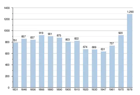 - Bronnen:NIS, Opm:1831 tot en met 1970=volkstellingen, 1976= inwonersaantal op 31 december