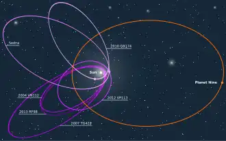 - ↑ (en) 'Planet X revamped after the discovery of the Sedna-like object 2012 VP113?', oxfordjournals.org, 16 augustus 2014. Geraadpleegd op 23 januari.