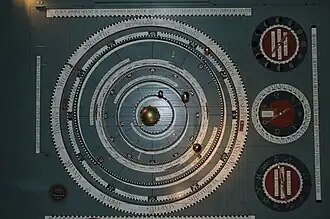 Het planetarium is een schaalmodel van het zonnestelsel, waarmee de standen van de zon, maan, planeten en sterren kunnen worden aangegeven. Door middel van vele in elkaar grijpende raderen die aangedreven worden door een uurwerk, worden alle standen van deze hemellichamen weergegeven. De planeten zijn op schaal gemaakt en draaien op realistische snelheid (héél langzaam, niet zichtbaar voor het menselijk oog) rond in uitgespaarde groeven in het beschilderde plafond.