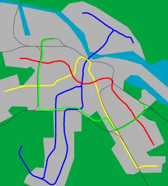 In de vooroorlogse stad zou het metronet geheel ondergronds worden aangelegd en daarbuiten op aardenbaan of viaduct. Tot het in detail uitwerken van de geplande tracés is het echter nooit gekomen zodat het niet bekend is waar de tracés precies boven de grond zouden komen.
