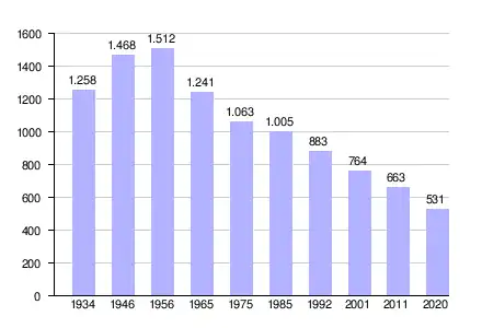 | Bevolkingsontwikkeling tussen 1934 en 2020 |