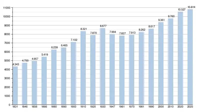 Alle historische gegevens hebben betrekking op de huidige gemeente, inclusief deelgemeenten, zoals ontstaan na de fusie van 1 januari 1977.
