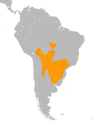 Deze soort komt voor in Argentinië, Bolivia, Brazilië, Paraguay en Uruguay en telt vier ondersoorten:[2]
