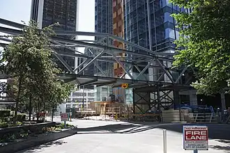 Nieuwe bouwprojecten werden verplicht om een aansluiting te maken op het luchtbrugsysteem; in ruil hiervoor kregen ze meer vloeroppervlak aangeboden. Wanneer de projecten fysiek niet konden aansluiten op nabijgelegen gebouwen, dragen ontwikkelaars bij aan het "Plus 15 Fonds", dat beheerd wordt door de gemeente om te gebruiken voor de financiering van andere ontbrekende verbindingen.[1]