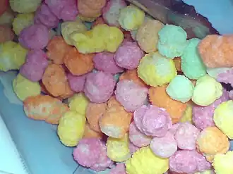 - Rijst. Gepofte rijst wordt bijvoorbeeld toegepast in rijstwafels, en wordt ook in felle kleuren en gezoet met suiker verkocht als snoepgoed.