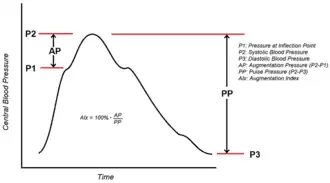 - ↑ Karamanoglu M, O'Rourke MF, Avolio AP, et al. An analysis of the relationship between central aortic and peripheral upper limb pressure waves in man. Eur Heart J 1993; 14: 160-167