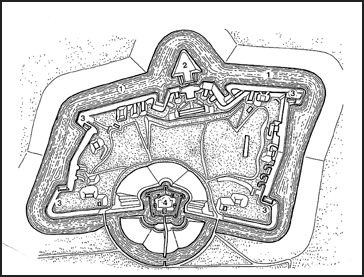 De vestingen hebben in een ideale situatie een gelijkmatig, veelhoekig grondplan. Flankerend vuur om de gracht en het direct voorliggende terrein te bestrijken wordt gegeven vanuit zogenaamde caponnières, gekazematteerde uitbouwen die voor de hoofdwal liggen. Deze uitbouwen zelf worden bestreken met schuingeplaatste geschutsopstellingen, kazematten in de hoofdwal of flankbatterijen.