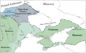 Het Pools-Litouwse Gemenebest had met het Verdrag van Androesovo in 1667, Linkeroever-Oekraïne verloren aan de Russen. Petro Doroshenko, hetman van het Kozakken-Hetmanaat probeerde Rechteroever-Oekraïne af te scheuren van het Pools-Litouwse Gemenebest, zonder succes. Doroshenko bood daarom zijn vazaltrouw aan sultan Mehmet IV van het Ottomaanse Rijk. Zo ontstond in 1669 Ottomaans-Oekraïne.