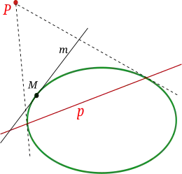 Ligt het punt op de kegelsnede , dan is de poollijn van de raaklijn in aan .