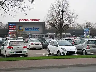 In 1965 opende meubelwinkel Porta Möbel zijn nieuwe hoofdkantoor in het industriegebied ten westen van de B 61. Hier werd 48,8 hectare land aangewezen op "de groene weide" voor commerciële ontwikkeling. Porta Möbel is nu een van de grootste meubelmarkten met een totale verkoopoppervlakte van 25.000 m². In de directe omgeving vestigden zich steeds meer winkels en vanaf 1993 kwamen er grote, goed verkopende winkels bij. Direct tegenover Porta Möbel ontstond een aansluitende verkoopruimte met MediaMarkt (3.400 m² verkoopoppervlak), de speelgoedmarkt Smyths Toys en een Edeka-centrum. Andere winkels zijn onder meer een tuincentrum en een bouwmarkt. Hierdoor ontstond qua oppervlakte het grootste winkelcentrum van Oost-Westfalen.